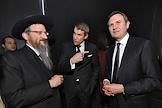 Главный раввин Федерации еврейских общин России Берл Лазар (слева) и директор по маркетингу BMW Group Россия Оливер Радемахер (справа) во время приема по случаю открытия выставки "BMW. История победитлей" и презентации нового BMW третьей серии в выставочном центре "Бахметьевский гараж".