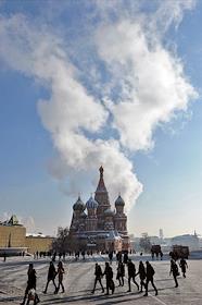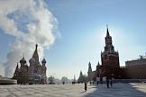 Виды Москвы. Красная площадь. Спасская башня Кремля и дорожный знак "Движение на велосипедах запрещено".