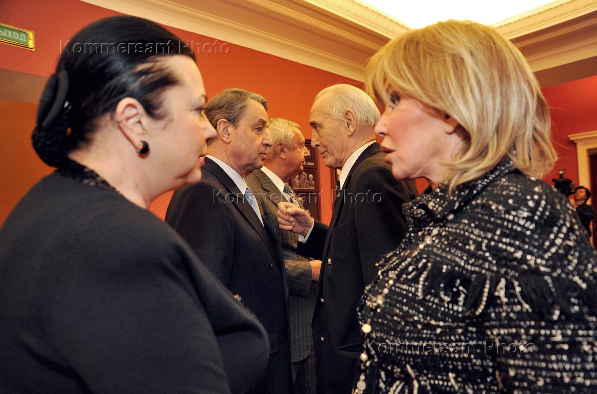Супруга генеральный директор "ИТАР-Тасс" Виталия Игнатенко Светлана (слева) и актриса Лариса Голубкина (справа) на юбилейном вечере, посвященном 75-летию Дома Актера. Вечер прошел в Театре имени Евг. Вахтангова.