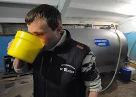 Работа животноводческого комплекса ООО «Фаворит». Заливка молока в цисцерну для транспортировки.