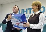 Председатель совета директоров ОАО "Международный аэропорт "Внуково" Виталий Ванцев (слева) и директор ОАО "Авиационная компани "Трансаэро" Ольга Плешакова (справа) во время пресс-конференции на тему: "Начало сотрудничества аэропорта "Внуково" и авиакомпании "Трансаэро". Новые возможности для пассажиров в 2012 году." Пресс-конференция прошла в центральном офисе агентства "Интерфакс".