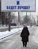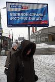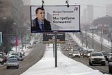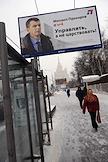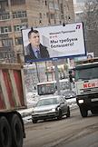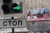 Выборы президента России. Предвыборная агитация кандидата на должность президента России Владимира Путина на улицах города.