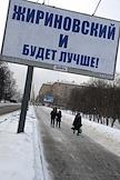 Выборы президента России. Предвыборная агитация кандидата на должность президента России Владимира Жириновского на улицах города.