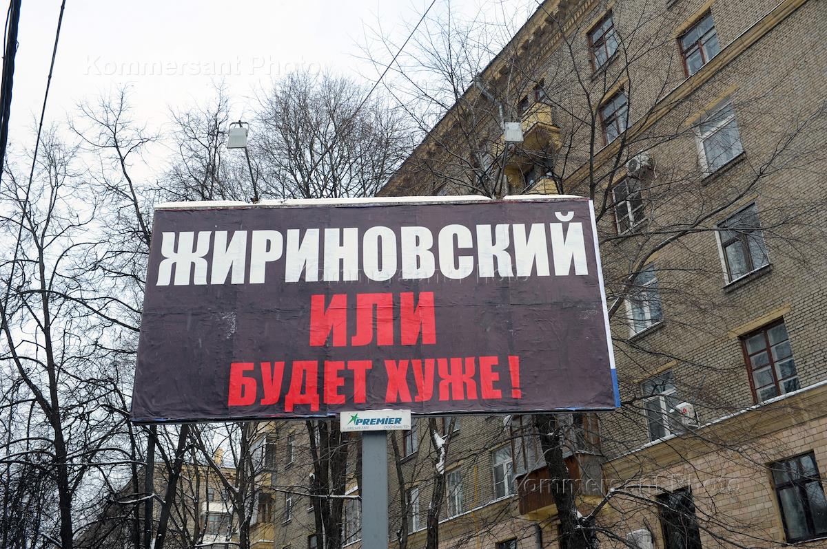Выборы президента России. Предвыборная агитация кандидата на должность президента России Владимира Жириновского на улицах города.
