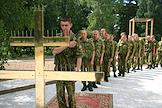 Солдаты срочной службы во время церемонии освящения креста полкового храма в одной из частей внутренних войск Беларуси.