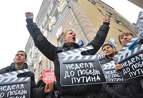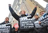 Сторонник оппозиции с плакатом на спине "Я за Россию без Путина!" во время акции "Живое кольцо" на Садовом кольце.