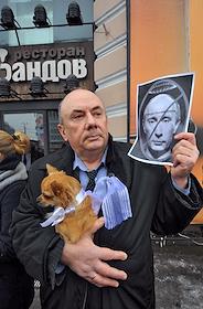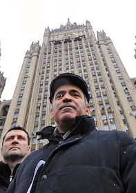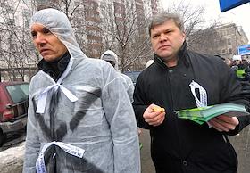 Председатель Российской объединенной демократической партии "Яблоко" Сергей Митрохин (справа) во время акции оппозиции "Живое кольцо" на Садовом кольце.