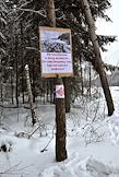 Празднование "Бакшевской масленицы". Плакат на дереве "Автомобилям в лесу не место. Оставь машину там, где кончается асфальт!".
