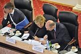 Расширенное заседание коллегии Министерства финансов России. Слева направо: заместитель министра финансов России - начальник Главного управления федерального казначейства министерства финансов Татьяна Нестеренко, министр финансов России Антон Силуанов, руководитель Федерального казначейства России Роман Артюхин во время заседания.