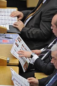 Сопредседатель "Партии народной свободы" Владимир Рыжков (вверху справа) на пленарном заседании Государственной думы.