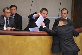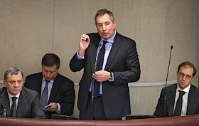 Заместитель председателя правительства России Дмитрий Рогозин (в центре) во время заседания Государственной думы.
