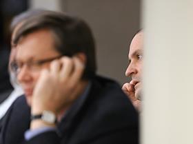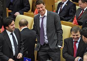 Член комитета Государственной думы России по делам общественных объединений и религиозных организаций Марат Сафин (справа) во время заседания Государственной думы России.
