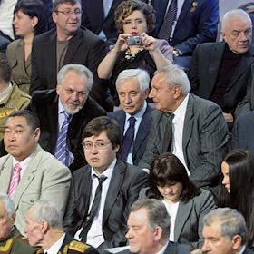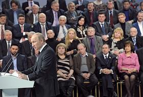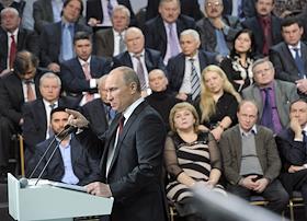 Встреча председателя правительства России Владимира Путина с представителями Общероссийского народного фронта (ОНФ), региональных штабов, журналистами и политологами в ЦВЗ "Манеж".