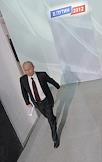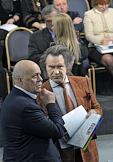 Телеведущий Леонид Якубович (слева) и главный редактор "Московского комсомольца" Павел Гусев (справа) перед началом встречи председателя правительства России Владимира Путина с представителями Общероссийского народного фронта (ОНФ), региональных штабов, журналистами и политологами.