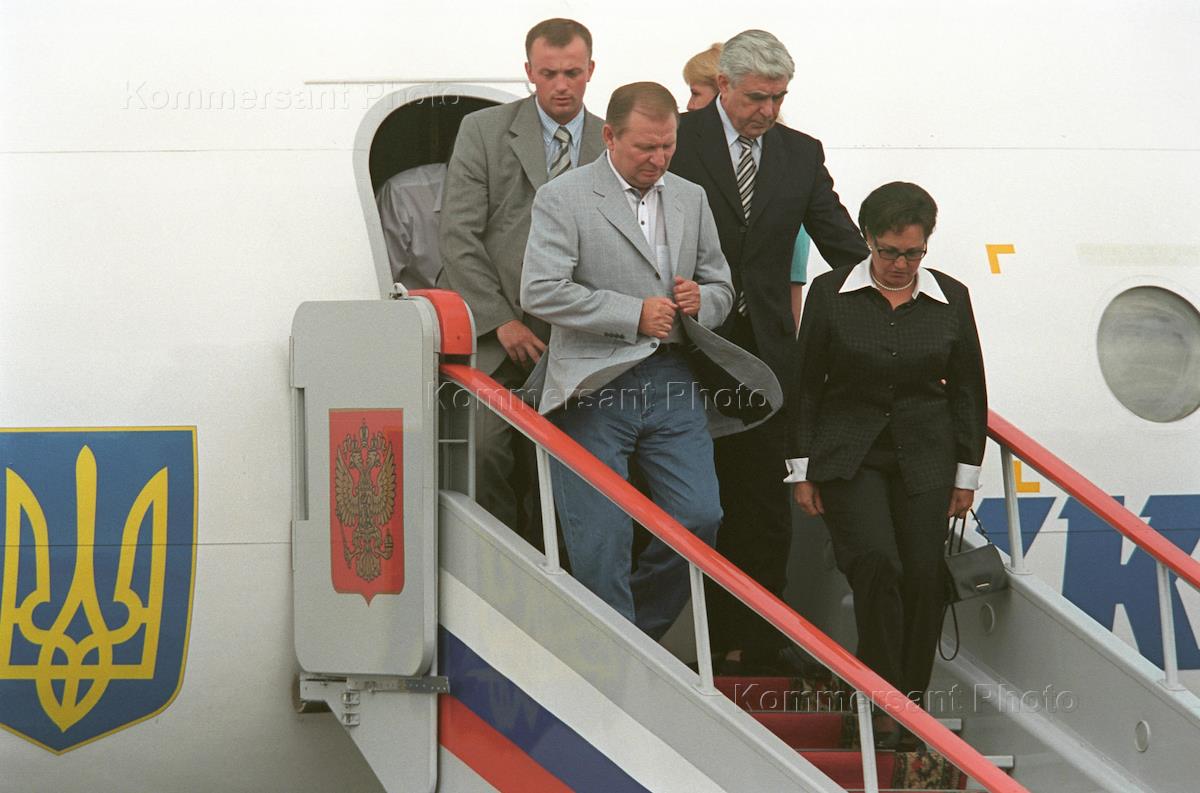 The president of Ukraine Leonid Kuchma (second from the left) with his wife (right) are leaving the board at the Vnukovo-2 airport before the beginning of his official visit to Russia.