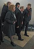 Выборы президента России. Кандидат на должность президента России, председатель правительства России Владимир Путин (слева) с супругой Людмилой Путиной (в центре) и заместитель директора Института этнологии и антропологии РАН, председатель участковой избирательной комиссии Владимир Зорин (справа) во время голосования на избирательном участке.