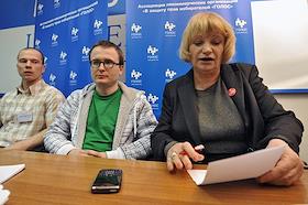 Выборы президента России. Слева направо: наблюдатели на выборах от ассоциации "Голос" Данила Сухарев, Елизавета Клепикова и исполнительный директор ассоциации "Голос" Лилия Шибанова на пресс-конференции в Независимом пресс-центре.