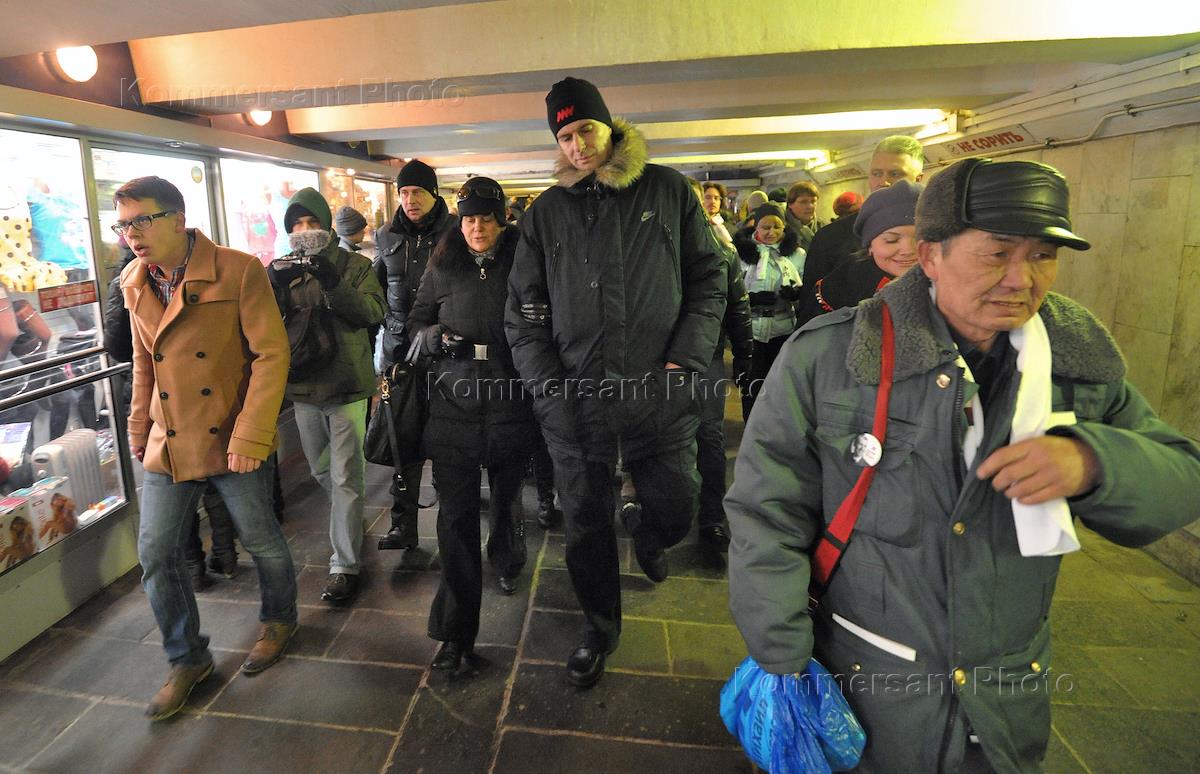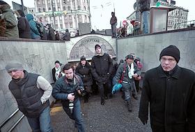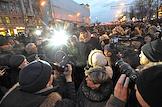 Кандидат на должность президента России, президент "Онэксим" Михаил Прохоров (в центре) перед проведением митинга "За честные выборы". Митинг, посвященный итогам выборов президента России, прошел на Пушкинской площади.