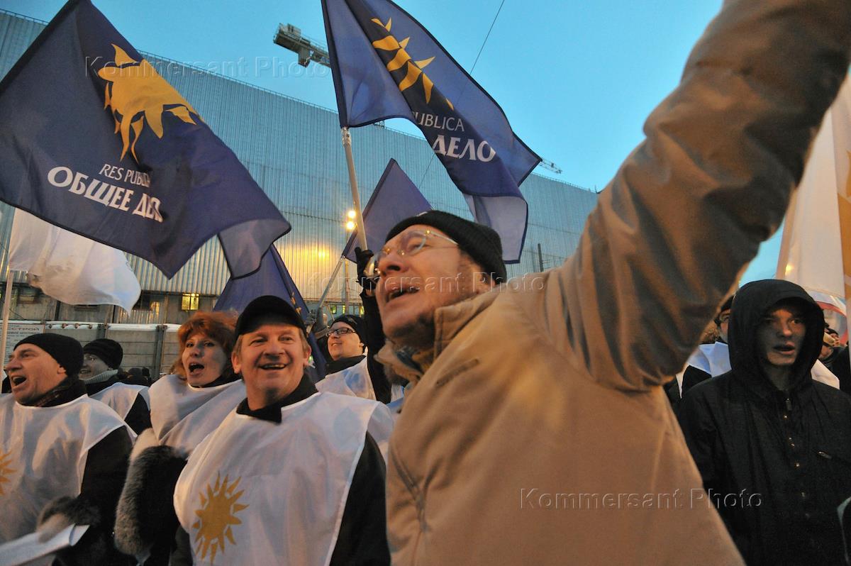Кандидат на должность президента России, президент "Онэксим" Михаил Прохоров (в центре) во время проведения митинга "За честные выборы". Митинг прошел на Пушкинской площади.