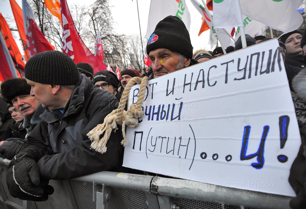 Лидер движения "Левый фронт" Сергей Удальцов (в центре) во время проведения митинга "За честные выборы". Митинг, посвященный итогам выборов президента России прошел на Пушкинской площади.