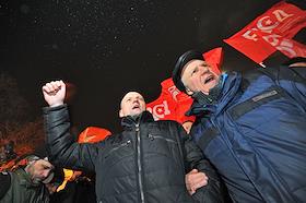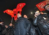Лидер движения "Левый фронт" Сергей Удальцов (в центре) во время проведения митинга "За честные выборы". Митинг, посвященный итогам выборов президента России прошел на Пушкинской площади.