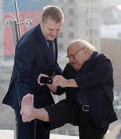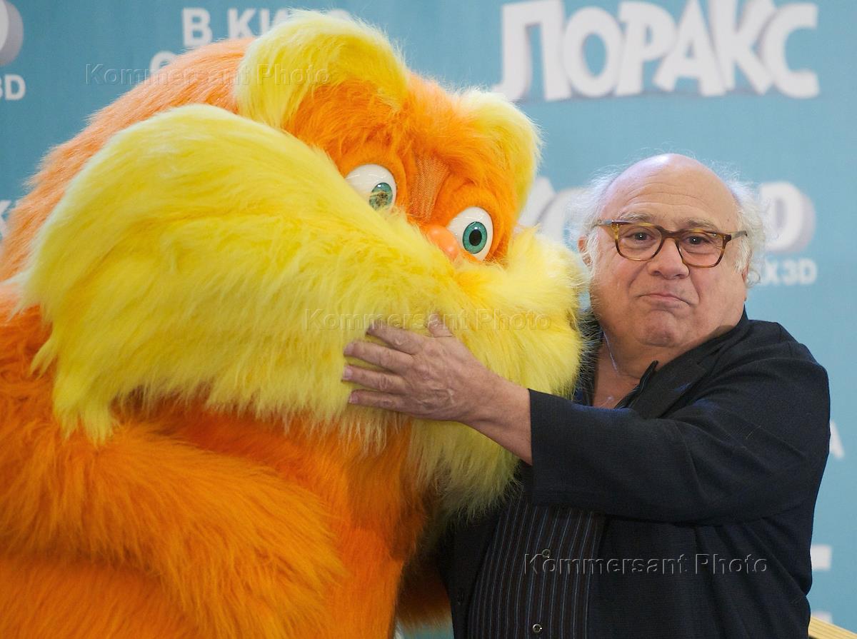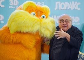 Американский актер Дени Де Вито (справа) после пресс-конференции, посвященной премьере анимационного фильма "Лоракс". Пресс-конференция прошла в отеле Ritz Carlton.