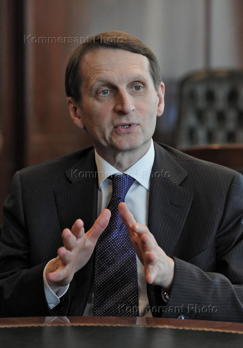 Председатель Государственной думы России Сергей Нарышкин во время интервью.