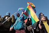 Сотрудники правоохранительных органов во время задержания активистов движения "Левый фронт" на митинге "За честные выборы" на Новом Арбате.