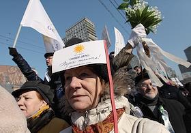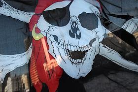 Флаг с изображением пирата во время митинга "За честные выборы", организованном активистами движения "Левый фронт" на Новом Арбате.