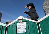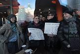 Посетители кафе наблюдают за митингом "За честные выборы", организованным активистами движения "Левый фронт". Митинг прошел на Новом Арбате.