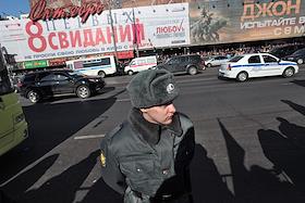 Сотрудник правоохранительных органов во время дежурства на митинге "За честные выборы", организованном активистами движения "Левый фронт" на Новом Арбате.
