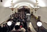 Движение потока людей в метро перед митингом "За честные выборы", организованном активистами движения "Левый фронт".