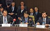 Слева направо: заместитель министра транспорта России Валерий Окулов, министр транспорта России Игорь Левитин и руководитель Федерального агентства воздушного транспорта (Росавиация) Александр Нерадько во время заседания коллегии Федерального агентства воздушного транспорта по вопросу "Об итогах работы Федерального агентства воздушного транспорта в 2011 году и основных задачах на 2012 год".