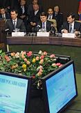 Слева направо: руководитель Федерального агентства воздушного транспорта (Росавиация) Александр Нерадько, его заместители Дмитрий Савицкий, Константин Махов и министр транспорта России Игорь Левитин во время заседания коллегии Федерального агентства воздушного транспорта по вопросу "Об итогах работы Федерального агентства воздушного транспорта в 2011 году и основных задачах на 2012 год".