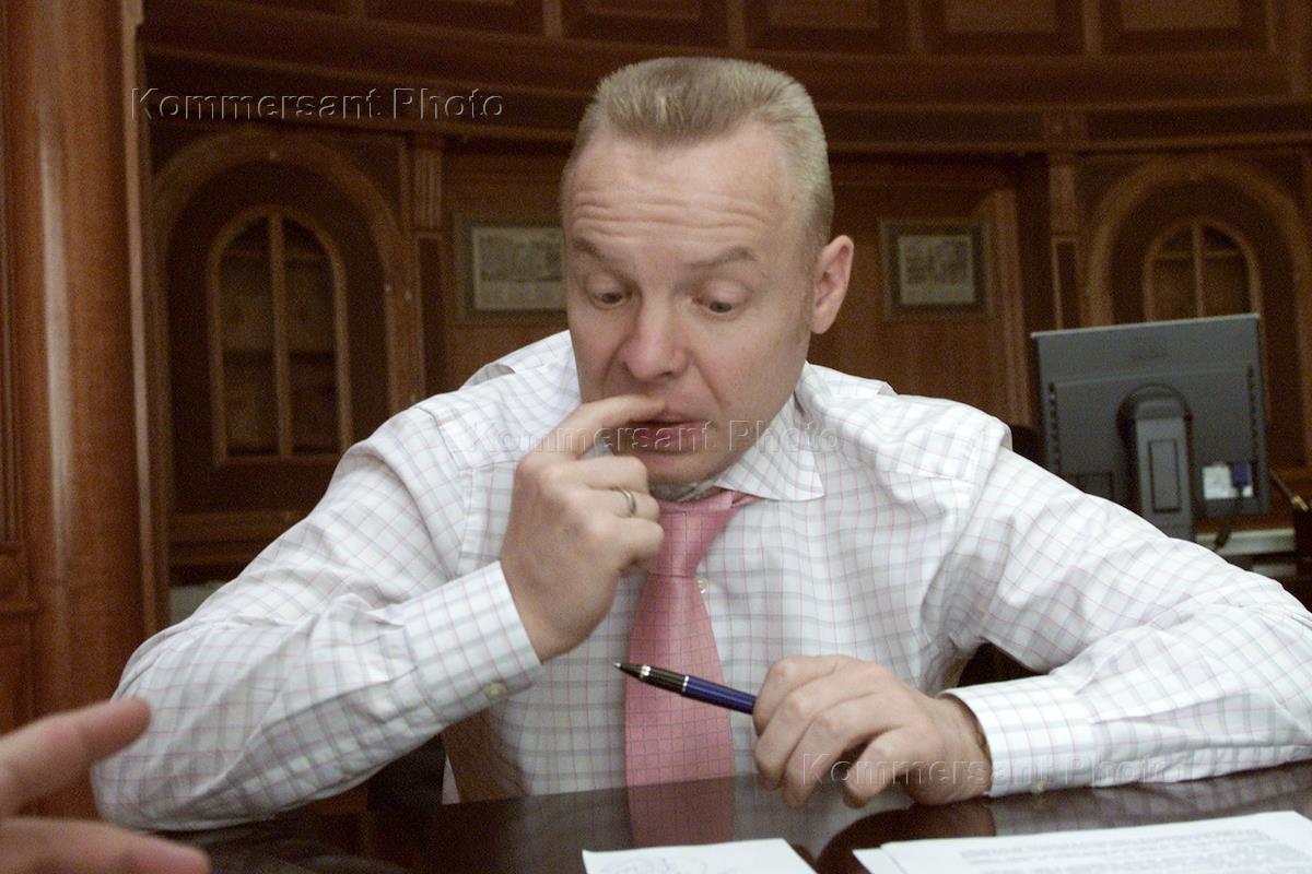 Президент компании "СИБУР" Дмитрий Мазепин отвечает на вопросы журналистов в своем рабочем кабинете.