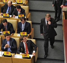 Председатель счетной палаты России Сергей Степашин (справа) на пленарном заседании Государственной думы России.