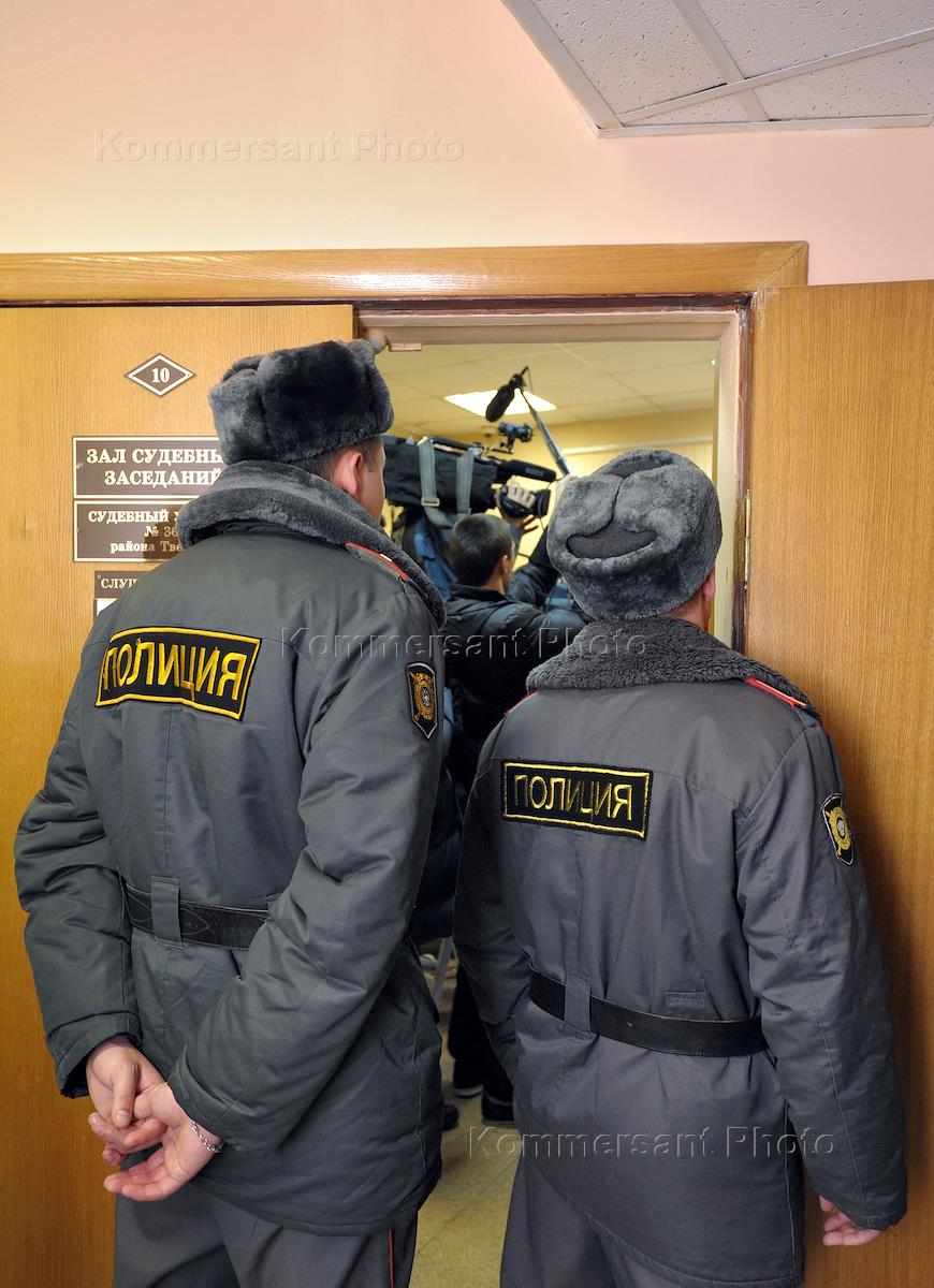 Блогер Алексей Навальный (в центре), обвиняемый в нарушении порядка проведения митинга 5 марта на Пушкинской площад, перед началом рассмотрения его дела. Рассмотрение дела состоялось в мировом участке №369.