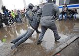 Сотрудники полиции во время задержания участника митинга протеста у телецентра "Останкино" в связи с показом фильма "Анатомия протеста" на канале НТВ. Митинг провели сторонники акции "за честные выборы".