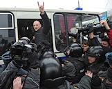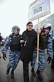 Лидер движения "Левый фронт" Сергей Удальцов (справа) во время митинга сторонников акций "За честные выборы". Митинг прошел у телецентра "Останкино" в связи с показом фильма "Анатомия протеста" на канале НТВ.