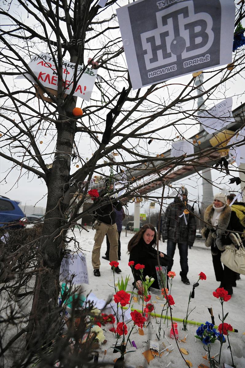 Cторонники акций "За честные выборы" провели митинг протеста у телецентра "Останкино" в связи с показом фильма "Анатомия протеста" на канале НТВ.