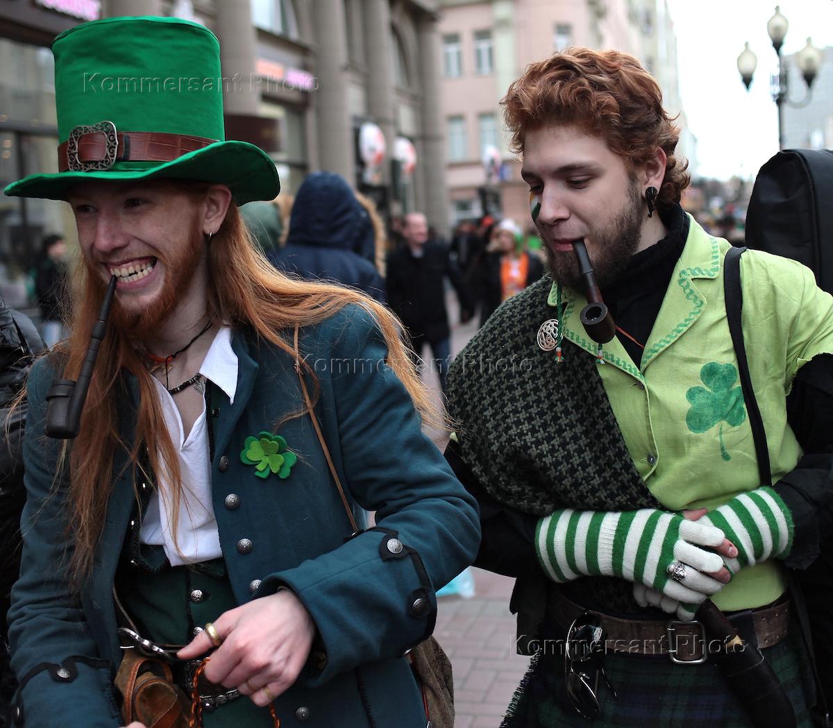 Шествие, посвященное национальному празднику Ирландии Дню Святого Патрика, прошло на Старом Арбате.