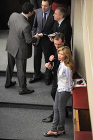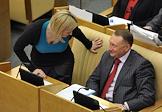 Член комитета Государственной думы (ГД) России по бюджету и налогам Николай Гончар (слева) и председатель комитета ГД России по вопросам семьи, женщин и детей Елена Мизулина (справа) во время заседания Госдумы России.