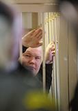 Националист Вячеслав Дацик, обвиняемый в разбое и поджоге церкви, во время заседания Невского районного суда.