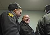 Националист Вячеслав Дацик (в центре), обвиняемый в разбое и поджоге церкви, во время заседания Невского районного суда.