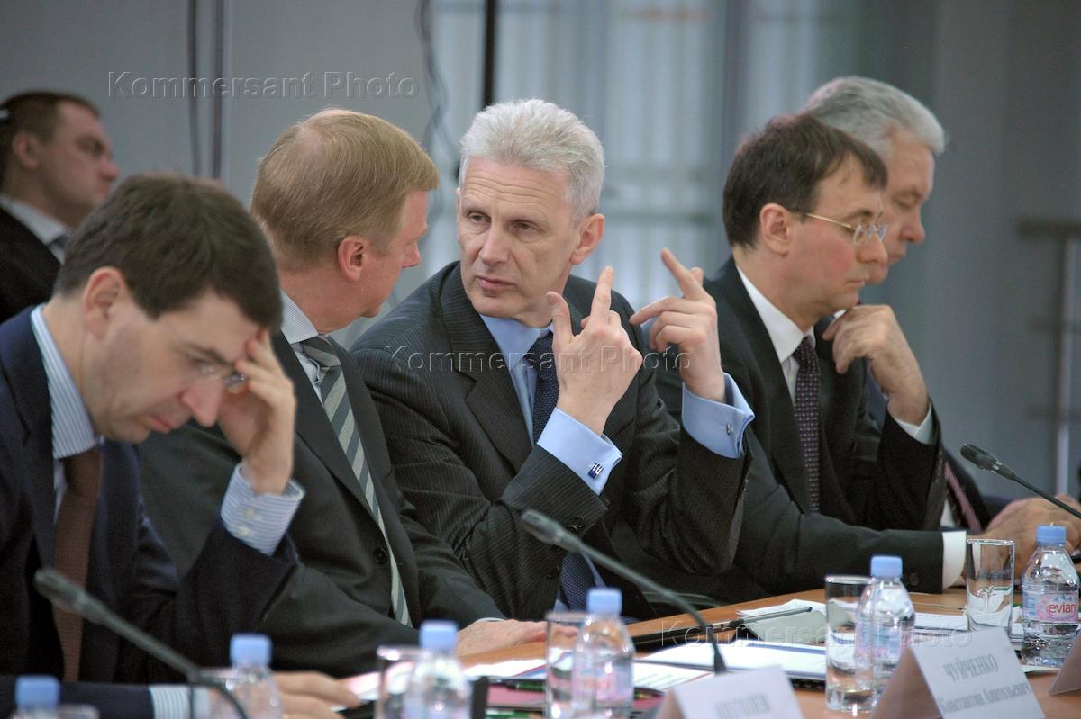 Слева направо: министр связи и коммуникаций Игорь Щеголев, генеральный директор "Роснано" Анатолий Чубайс и министр образования и науки России Андрей Фурсенко перед началом заседание Комиссии по модернизации и технологическому развитию экономики России.