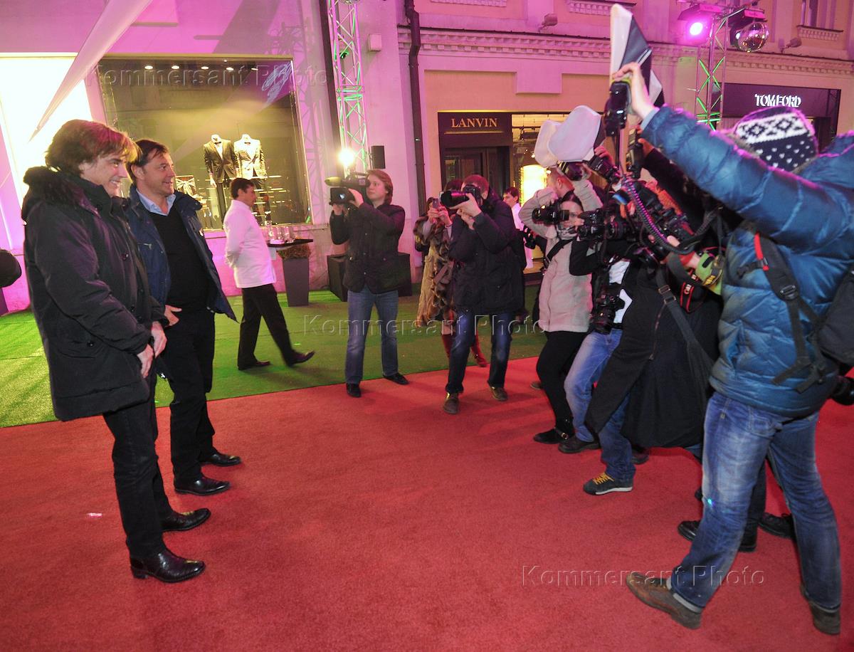 Французский композитор и музыкант Жан-Мишель Жарр (справа) на открытии бутика Lalique в Третьяковском проезде.