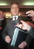 Russian Deputy Prime Minister Mikhail Kasyanov answers journalists' questions after a news conference at the Government house.