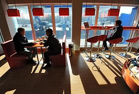 Жанровая фотография. Посетители в кафе на автозаправочной станции "Газпромнефть" №150.