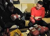 Российский боксер Александр Бахтин (слева) и боксер из Венесуэлы Неомар Сермено (справа) на официальной церемонии взвешивания всех участников боксерского шоу "Звездный ринг" в загородной резиденции "Агаларов-Эстейт" (Agalarov Estate).