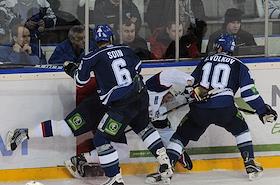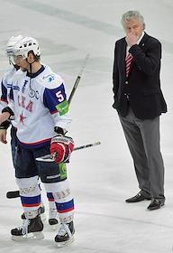 Континентальная хоккейная лига (КХЛ). Главный тренер команды СКА Милош Ржига (справа) после матча между командами "Динамо" (Москва) - СКА (Санкт-Петербург). Матч прошел на малой спортивной арене "Лужники".